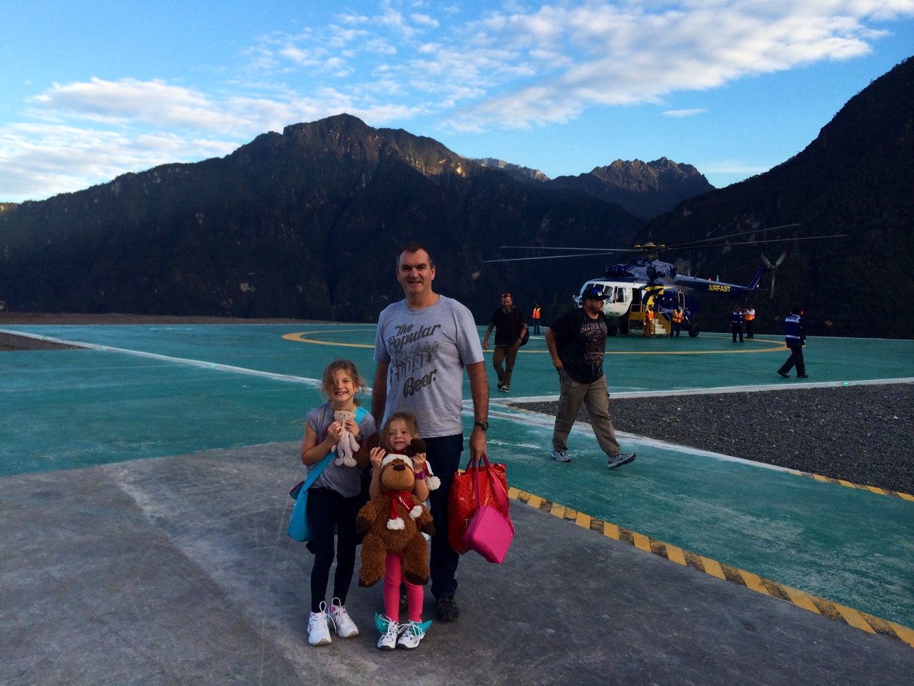 Following our stay at the Rimba, it was up early with our fingers and toes crossed for clear skies and Chopper transport (as opposed to the bus). We were in luck and ‘Choppered Up’ to Rainbow Ridge in the early morning, much to the girls’ excitement and my immense relief. Earmuffs and a bird’s-eye view for all! These Choppers are pretty impressive – 12 tonnes of armoured goodness, 2 tonnes of which is passenger and cargo weight and around 1.5 tonnes of fuel.