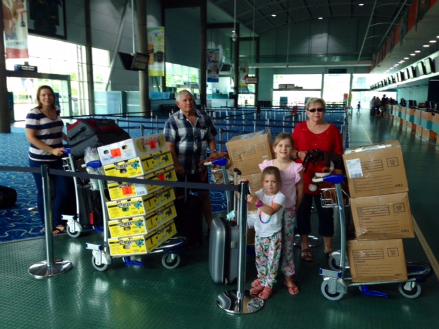 A tearful farewell to Nana, Grandad and Uncle Matt preceded an easy flight – there were about 35 of us on the plane so there was plenty of room for us all to spread out and for the kids on the flight to play together. It was only upon landing that I started to feel a little uneasy about getting all of my luggage through customs unscathed. Importation of food, toys, cosmetics and pharmaceuticals is forbidden and so if you want to bring any of these things in with you, they have to come as luggage. Hence all the bags! The last time I travelled in to Timika, my luggage was given a thorough rummaging and I didn’t fancy doing that again, 22 times over with two kids in tow… However, as it turns out, it was my lucky day! They opened two food boxes and one toy box and left everything else alone, hooray!