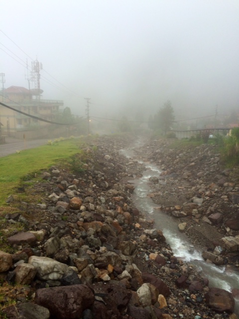 The weather has been beautiful of late – lovely warm sunny mornings with crisp, clear air before the clouds roll in for a cool afternoon. It really is amazing to see the entire town turn white with cloud cover. In the mornings the visibility from our deck of the surrounding mountains is incredible, but most afternoons we can barely see our neighbour’s house! We’ve had a number of thunderstorms and a couple of fairly heavy showers but mostly just drizzle. Check out the difference in the morning and afternoon views down the river toward our place…
