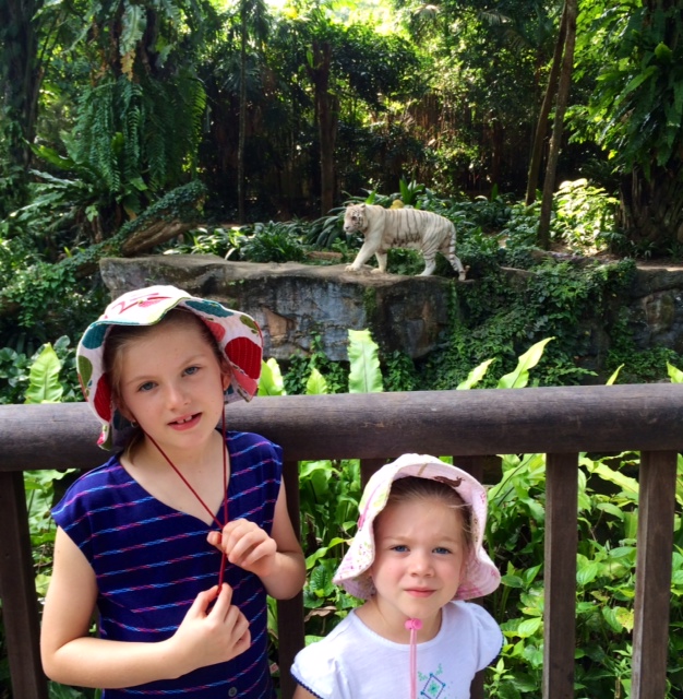 Day two in Singapore was another big day at what we think is one of the best zoos in the world. The Singapore version uses a clever blend of ditches and moats rather than cages to house their animals in natural looking exhibits. It was a great day and the kids had a ball. The highlight of the day was the giraffe feeding which extracted giggles galore from the girls. The lions, zebras, big cats and rhinos were a sight to behold although we must say that the resident white tiger seemed a little melancholy.