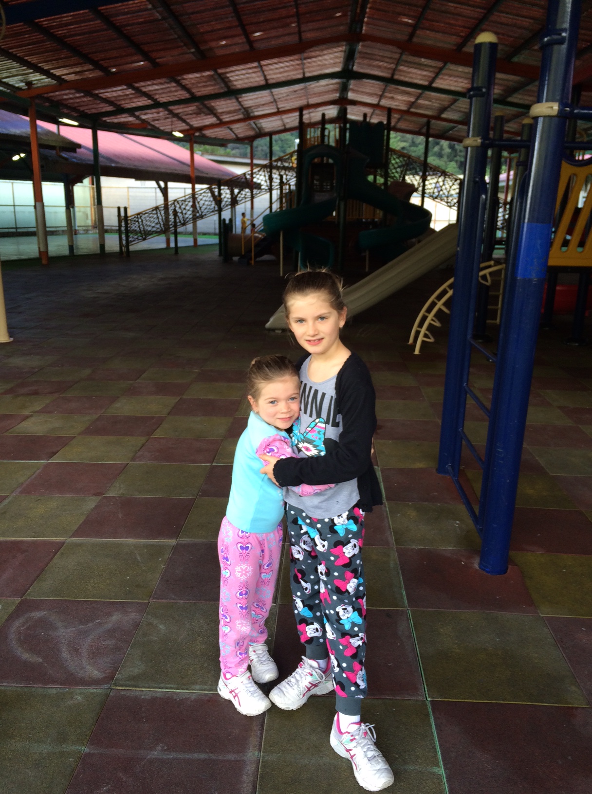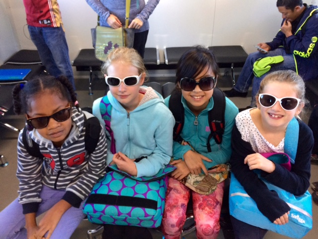 The girls were bursting with excitement to see Daddy and we (and our five trolleys of luggage) were rewarded with a reunion at the Customs exit – yay!