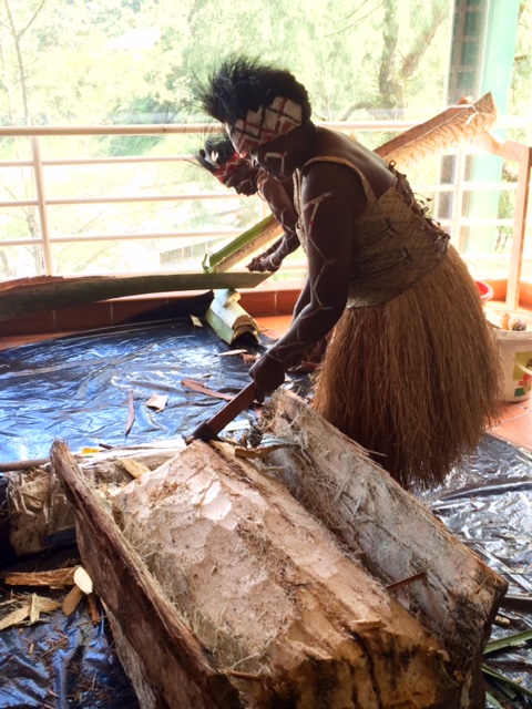 The Kamoro also shared their traditional method of sealing an animal skin (in this case lizard) onto the top of a carved drum, using blood mixed with lime as the glue.